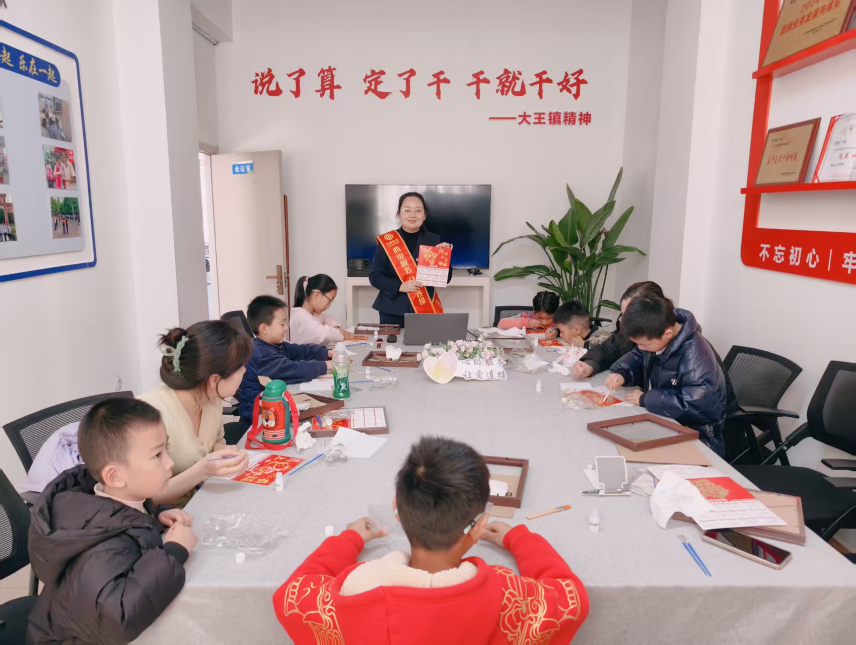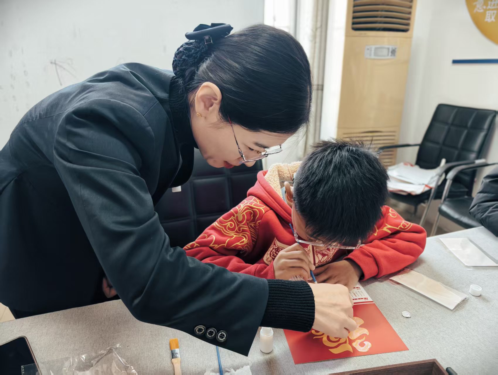 孩子们围坐成圈,眼神里满是好奇与期待,在工作人员的耐心引导下小心翼翼地动手尝试。他们先用铅笔勾勒出吉祥纹样与新年祝福,再用镊子夹起轻薄如蝉翼的金箔,精准粘贴在图案上,最后认真完成装裱。指尖翻飞间,原本朴素的板材渐渐变身,成为镶嵌着璀璨金箔、饱含新年寓意的精美摆件。