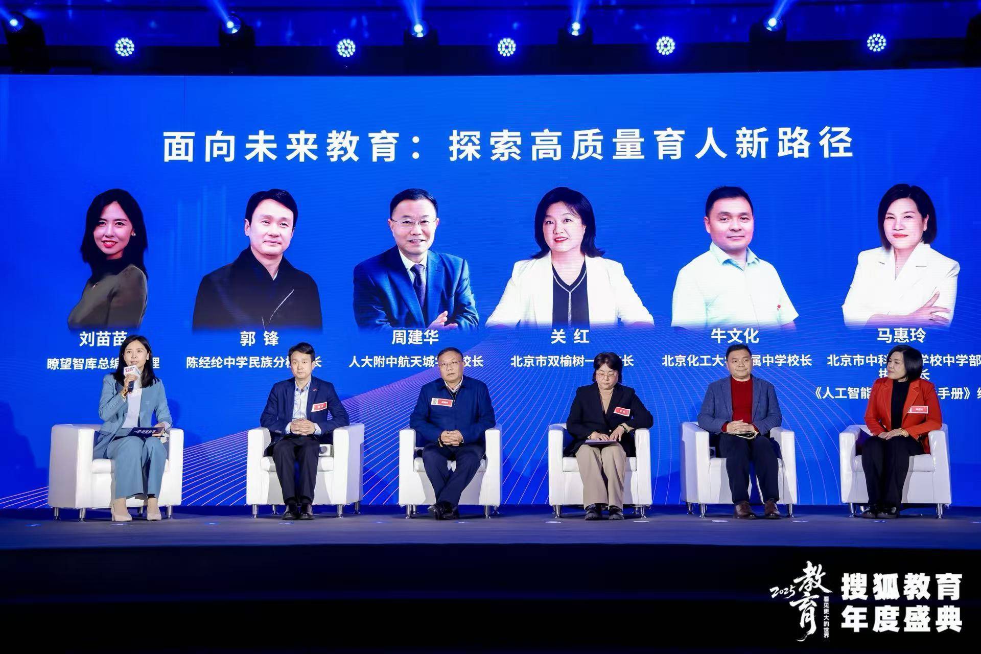 中国科学院院士孙昌璞、方小敏,全国政协委员、中国教育学会副会长王定华,搜狐视频关注流知名播主、著名作家、哲学家周国平,北京作协主席、茅盾文学奖获得者李洱,搜狐视频关注流知名播主、DR.LANG创始人、郎甄选主理人、著名主持人郎永淳,中国心理学会前任理事长、北京大学教授苏彦捷,中国心理学会副理事长、北京师范大学教授陶沙,清华大学心理与认知科学系副主任张丹,中国人民大学教授、中国心理学会理事雷雳,北京十一学校龙樾实验中学青少年研究院院长黄芳,人大附中航天城学校校长周建华,北京市双榆树一小校长关红,陈经纶中学民族分校校长郭锋,北京化工大学附属中学校长牛文化,北京市中科启元中学部执行校长、《人工智能通识课指导手册》编委马惠玲,瞭望智库总编辑助理刘苗苗等权威专家、知名校长等共聚本次盛典,一起针对前沿教育政策、学校教育方法、科技教育、心理健康教育等热点话题进行对话,以期探索出更为高效的教育模式,为重塑良好的教育生态贡献智慧和力量。搜狐公司运营及人力资源副总裁张雪梅出席活动,搜狐网副总编辑晏成代表主办方致辞。