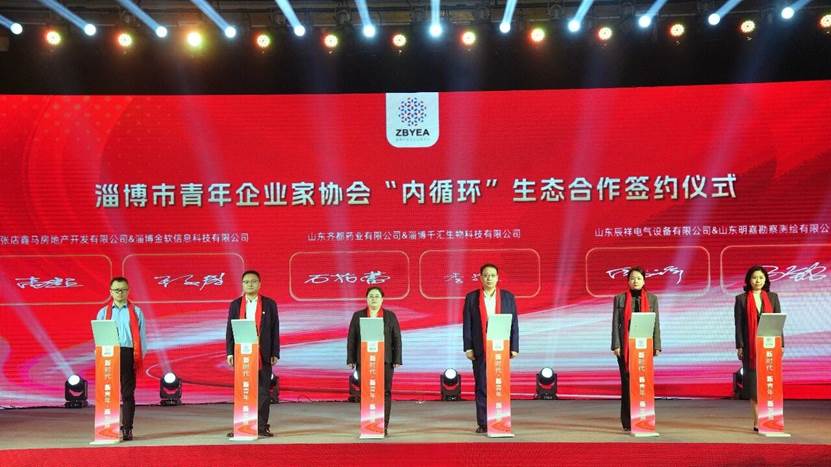 会上,还举行了淄博市青年企业家协会“内循环”生态合作签约仪式,仪式聚焦“资源共享、产业协同、生态共荣”的核心目标,旨在推动青年企业家之间形成优势互补、供需对接的良性循环体系——让技术成果在循环中转化落地,让优质资源在循环中高效配置,让合作价值在循环中持续跃升。