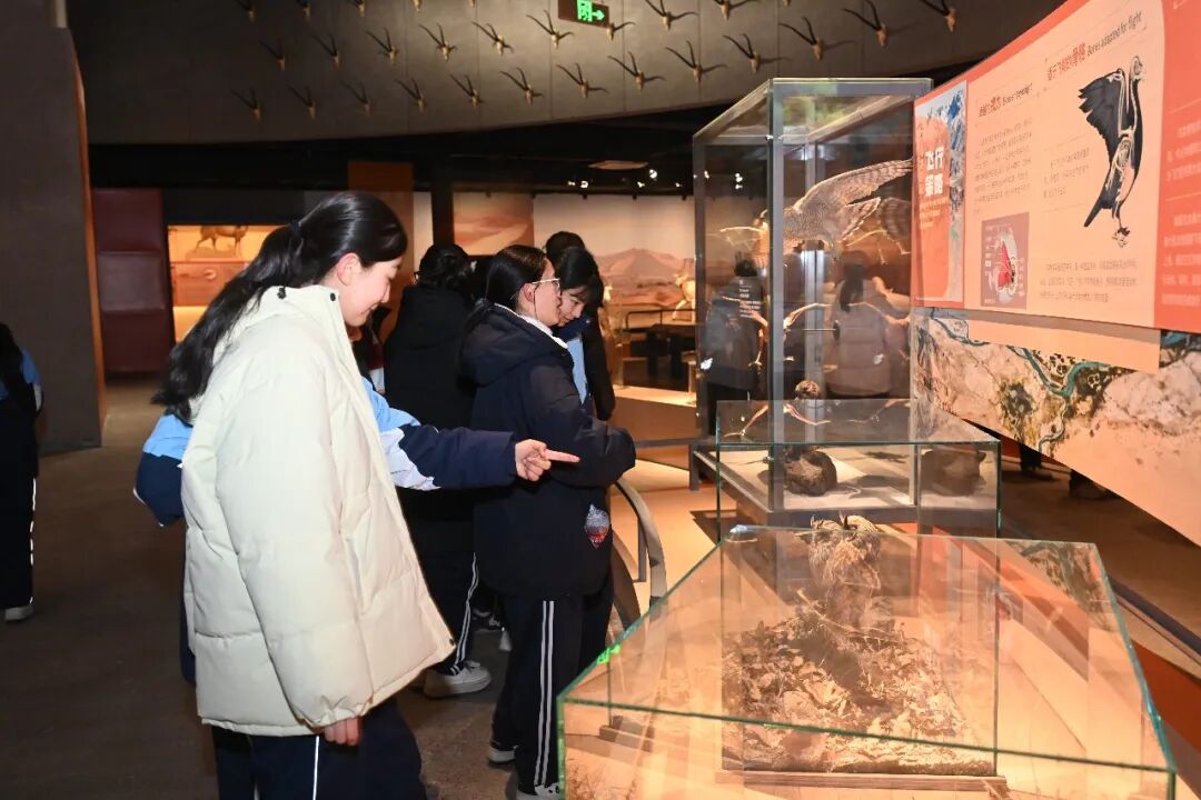 “哇,这是雪豹吗?它的尾巴好长!”“原来这就是课本上的普氏野马!”学生们围聚在栩栩如生的动物标本前聆听,讲解老师则循循善诱:“雪豹作为高原生态系统的旗舰物种与伞护种,其生存状态是区域生态健康的‘天然晴雨表’……”