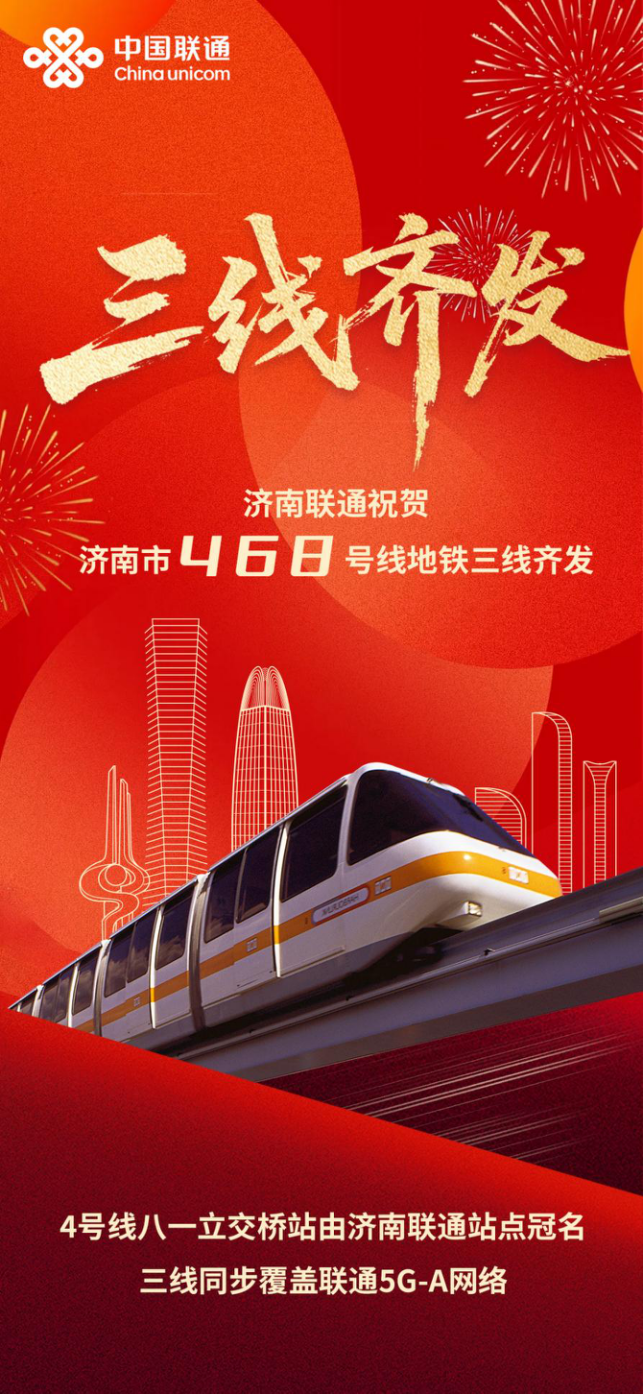 此次济南联通全面完成对三条地铁新线的5G-A网络覆盖,正是“推进5G网络向5G-A演进升级”要求的具体落地,也是济南布局新型信息基础设施的重要体现。