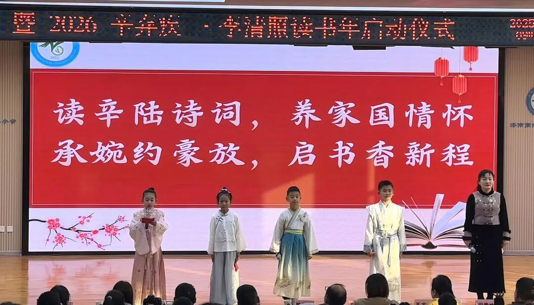 本次活动以“读辛陆诗词,养家国情怀;承婉约豪放,启书香新程”为主题,既是对2025年“辛弃疾·陆游读书年”育人成果的全面检阅,也是家校社协同育人模式的生动实践,更标志着学校“榜样人物引领读书年”课程体系迈入新阶段。
