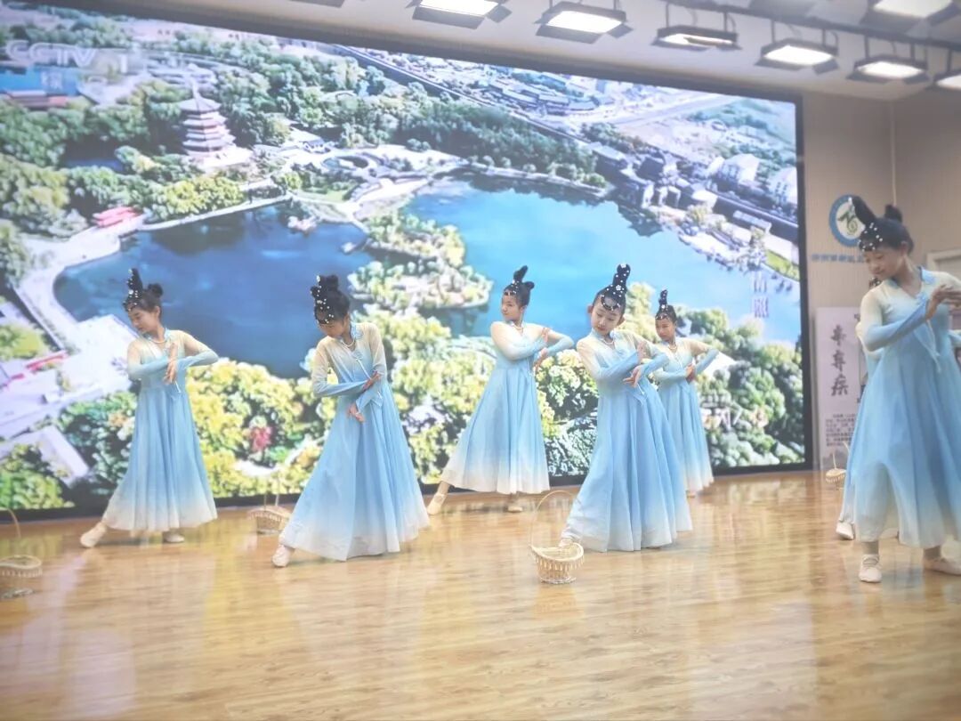 随后,领导、嘉宾与学生代表共同启动2026辛弃疾·李清照读书年。学校舞蹈社团带来创意舞蹈《如梦令》,队员们以柔美舞姿再现李清照词作中的清雅意境,肢体语言与诗词韵味完美融合,结尾“辛李共读”的造型将古今文人的精神共鸣定格,赢得全场阵阵掌声。最后,全体人员起立齐诵辛李经典诗词,洪亮的诵读声回荡在博闻厅内,让“济南二安”的文化魅力浸润人心,为成果演绎环节画上圆满句号。