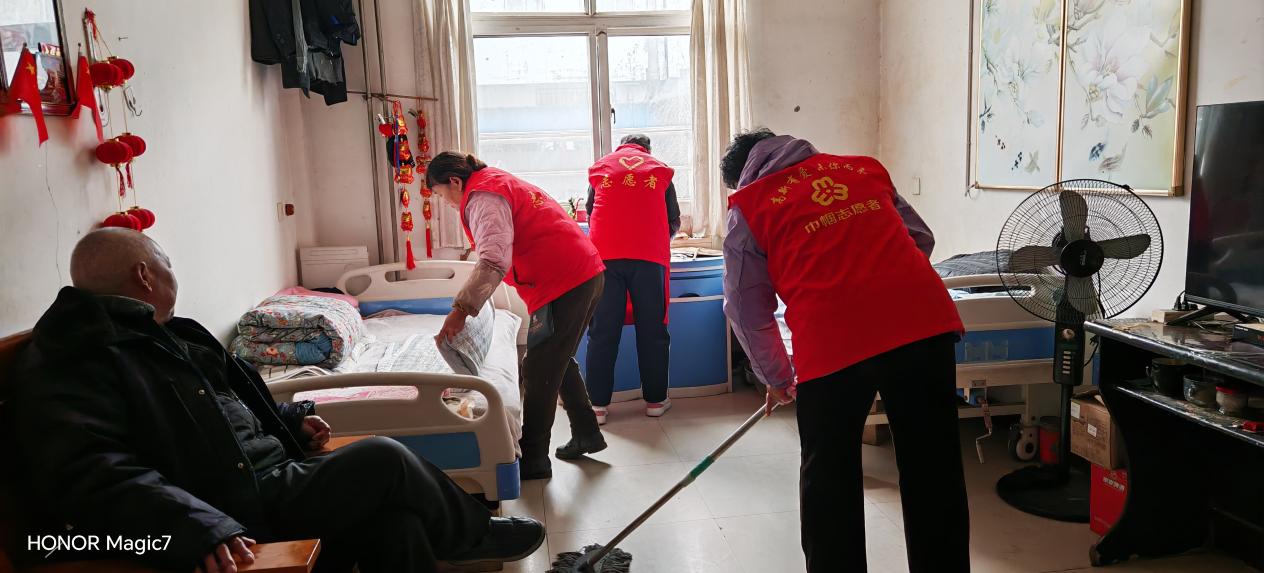演出结束,志愿者们分工协作,井然有序地投入到暖心服务中。有的帮老人打扫房间卫生;有的志愿者关心老人日常生活,为他们细致地讲解冬季养生常识与慢性病预防要点;有的志愿者围坐在老人身边促膝长谈,倾听老人讲述过往岁月的故事。