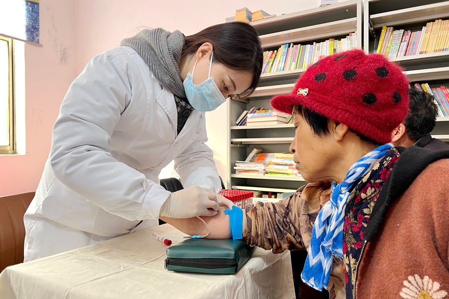 聊城市退役军人医院医护人员在冠县桑阿镇段庄村为村民进行健康体检