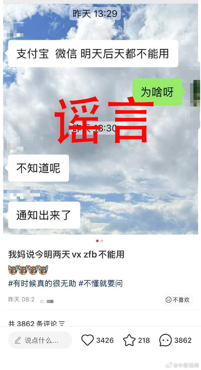 近日,在一些社交平台上,“12月30日、31日支付宝、微信支付不能使用”的消息流传。31日上午,微信团队回应中新经纬记者称,微信支付服务一切正常,“微信支付暂停”为谣言,请大家不信谣不传谣。(中新经纬)