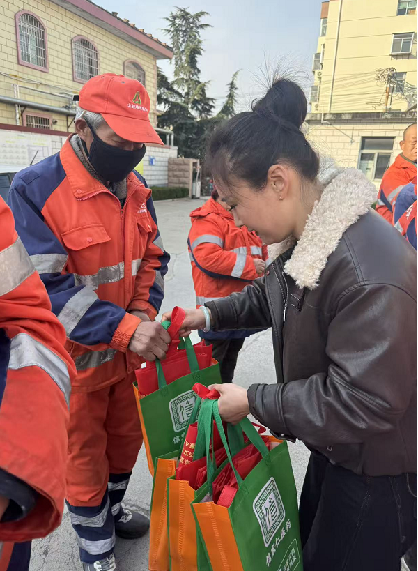随后进入“暖寒冬送温暖”环节,信宏仁医药为淄博北控金泽城市服务有限公司的环卫工人代表送上了精心准备的健康爱心礼包。礼包内包含多种实用的健康物品,旨在为环卫工人的身体健康保驾护航。信宏仁医药大区总于学彦在致辞中表示,环卫工人是城市的美容师,他们常年坚守在一线,用辛勤的汗水和无私的奉献守护着城市的整洁与美丽。信宏仁医药作为一家有社会责任感的企业,希望通过此次活动,向环卫工人表达敬意和感谢,让他们在寒冷的冬季感受到社会各界的关爱与温暖。