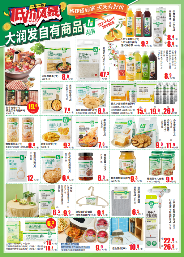 同时,大润发自有品牌“超省”系列表现尤为亮眼,火锅卷卷面8.9元/袋、鸡蛋华夫饼9.3元/盒、柳州螺蛳粉7.3元/袋等明星单品,以超实惠价格的定位成为精明消费者的首选。