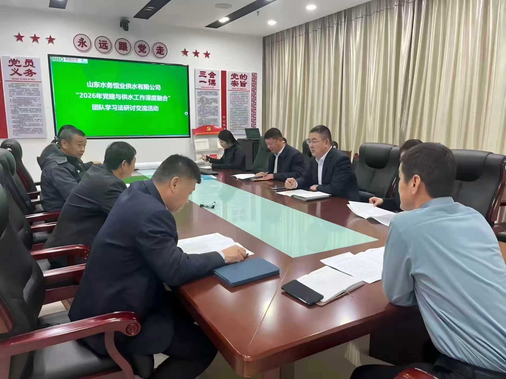 为深入贯彻新时代党的建设总要求,推动党建与供水业务深度融合,近日,山东水务恒业供水有限公司开展“2026年党建与供水工作深度融合团队学习法研讨交流活动”,聚焦融合关键问题,凝聚集体智慧,为公司高质量发展注入强劲政治动力。