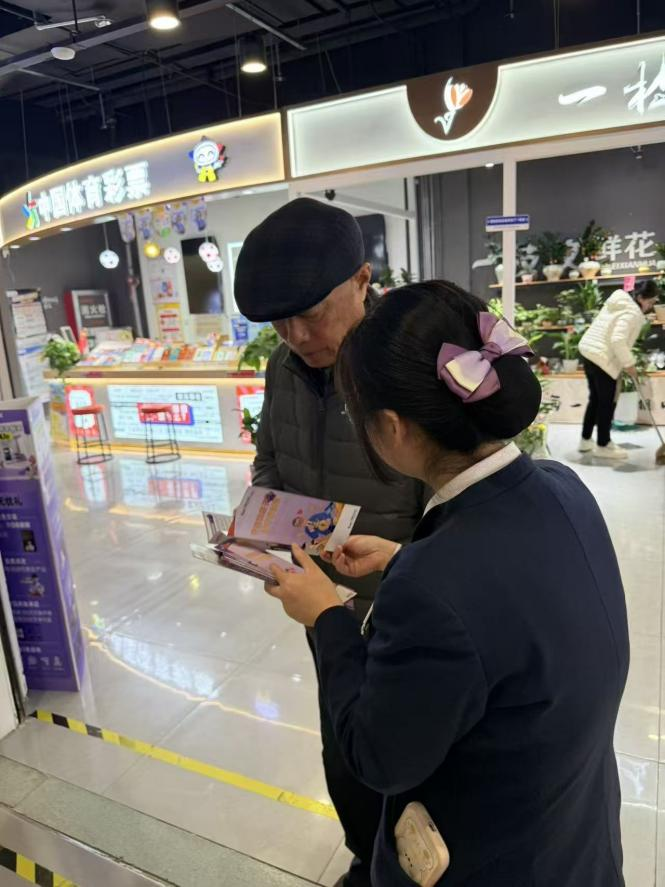 走进热闹的商业综合体,光大银行滨州分行的宣传身影同样活跃。在体彩店与花店环绕的区域,工作人员正耐心为老年市民讲解反诈手册,从“保健品诈骗”到“虚假养老投资”,用通俗易懂的语言剖析诈骗分子的“话术陷阱”。另一处鲜花店内,工作人员针对老年群体的认知特点,手把手指导识别诈骗宣传册上的典型案例,叮嘱他们“遇到天上掉馅饼的事,先找家人或银行工作人员问问”。