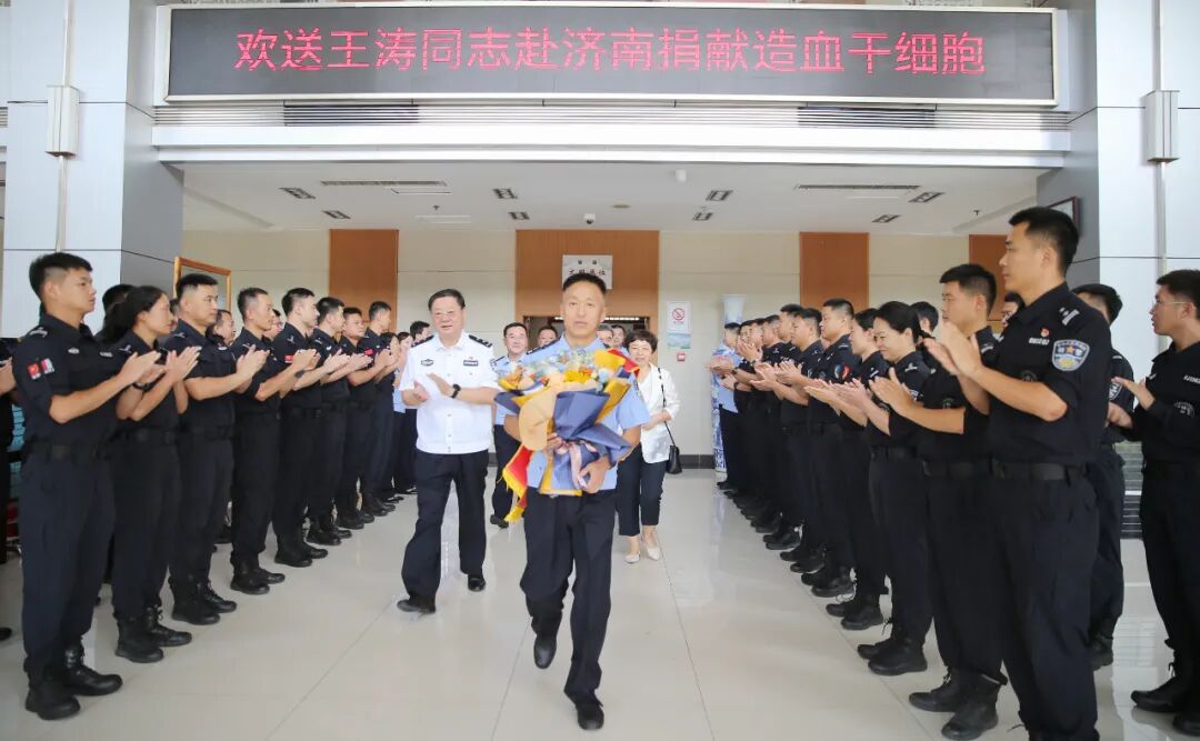 血浓于水,大爱无疆。8月21日,市公安局特巡警支队民警王涛在山东省立医院顺利完成造血干细胞捐献,为一名素未谋面的血液病患者送去了重生的希望。他也是全市公安机关第5例、市局机关第2例,全市第83例造血干细胞捐献者。