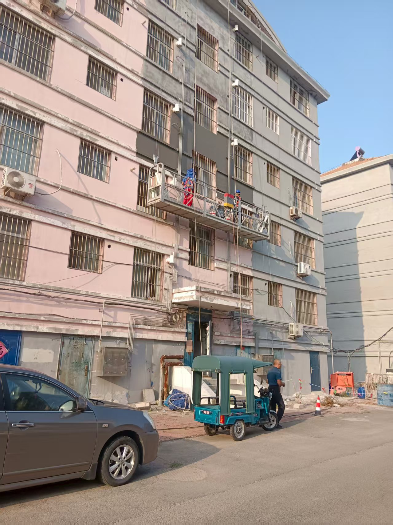 郭先生带领工人做外墙保温施工(郭先生供图)