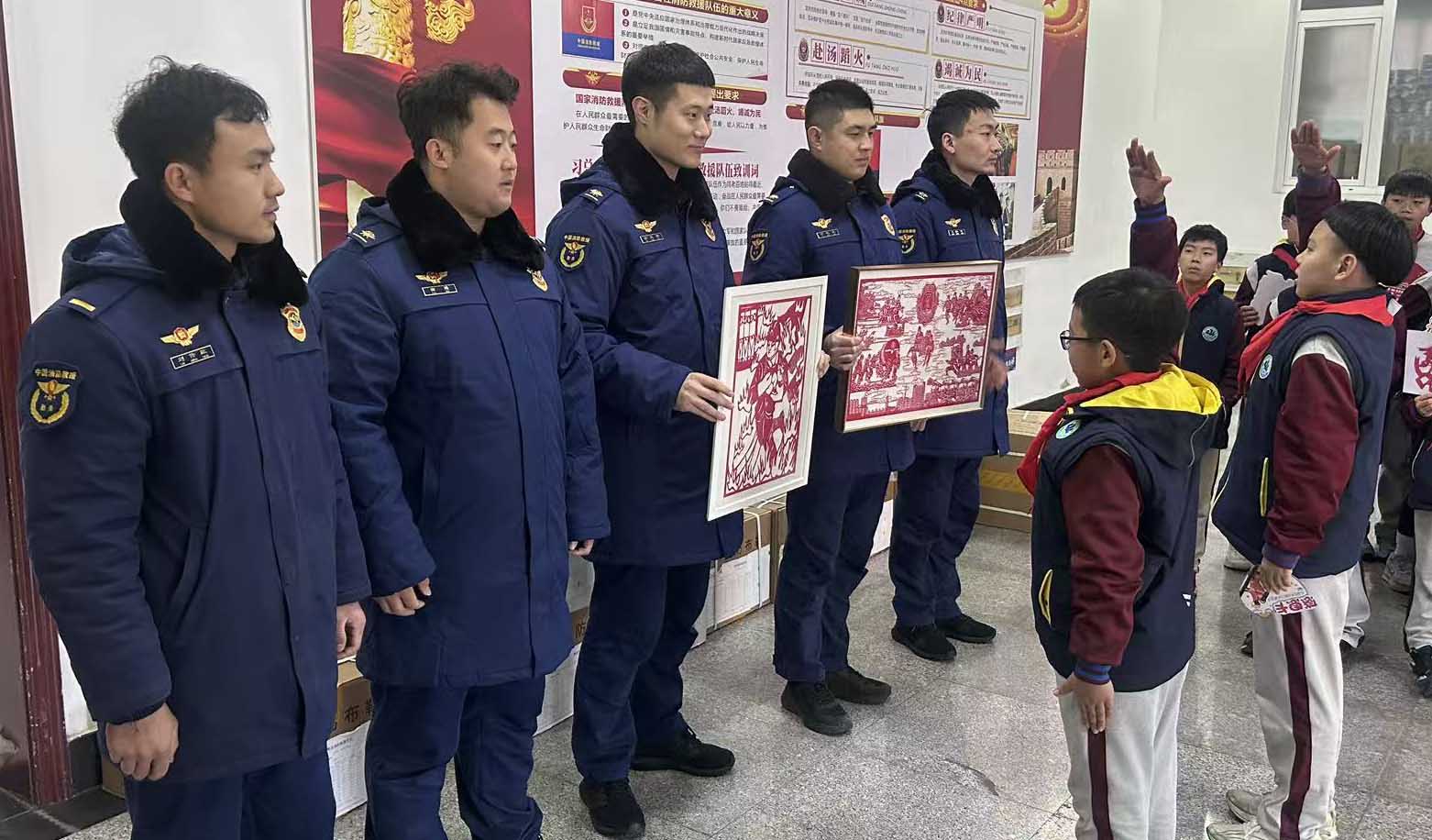这是一次童心与丹心的温暖相遇,纸张的红色与童声的清澈,共同编织成这个冬日最暖的礼物。火红的剪纸在阳光下熠熠生辉,恰如少年心中滚烫的爱国情怀,一双双小手,以红纸为媒,剪刀作笔,将传统的剪纸艺术化作“平安”“无畏”的图腾,一幅幅作品凝聚着队员们对祖国富强的美好期许,也饱含对“火焰蓝”的深情祝福献给消防员叔叔们,得到暖心回应,营区满是温情。