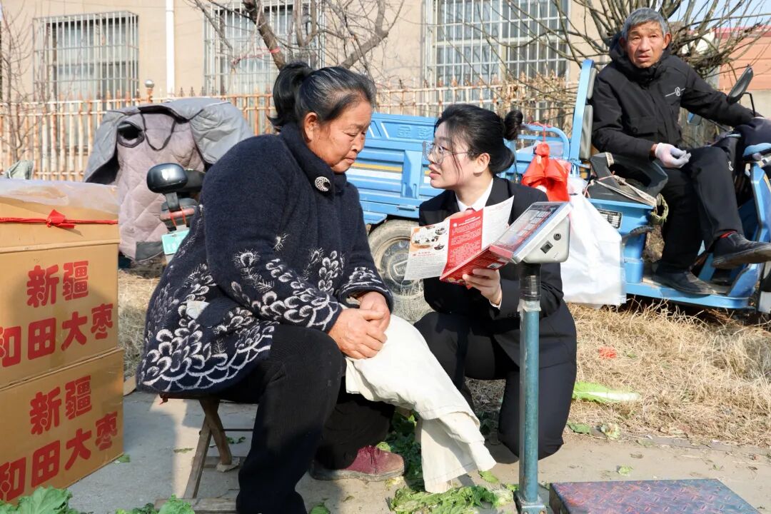 (农产品法庭干警在大集上向摊贩普及法律知识)
