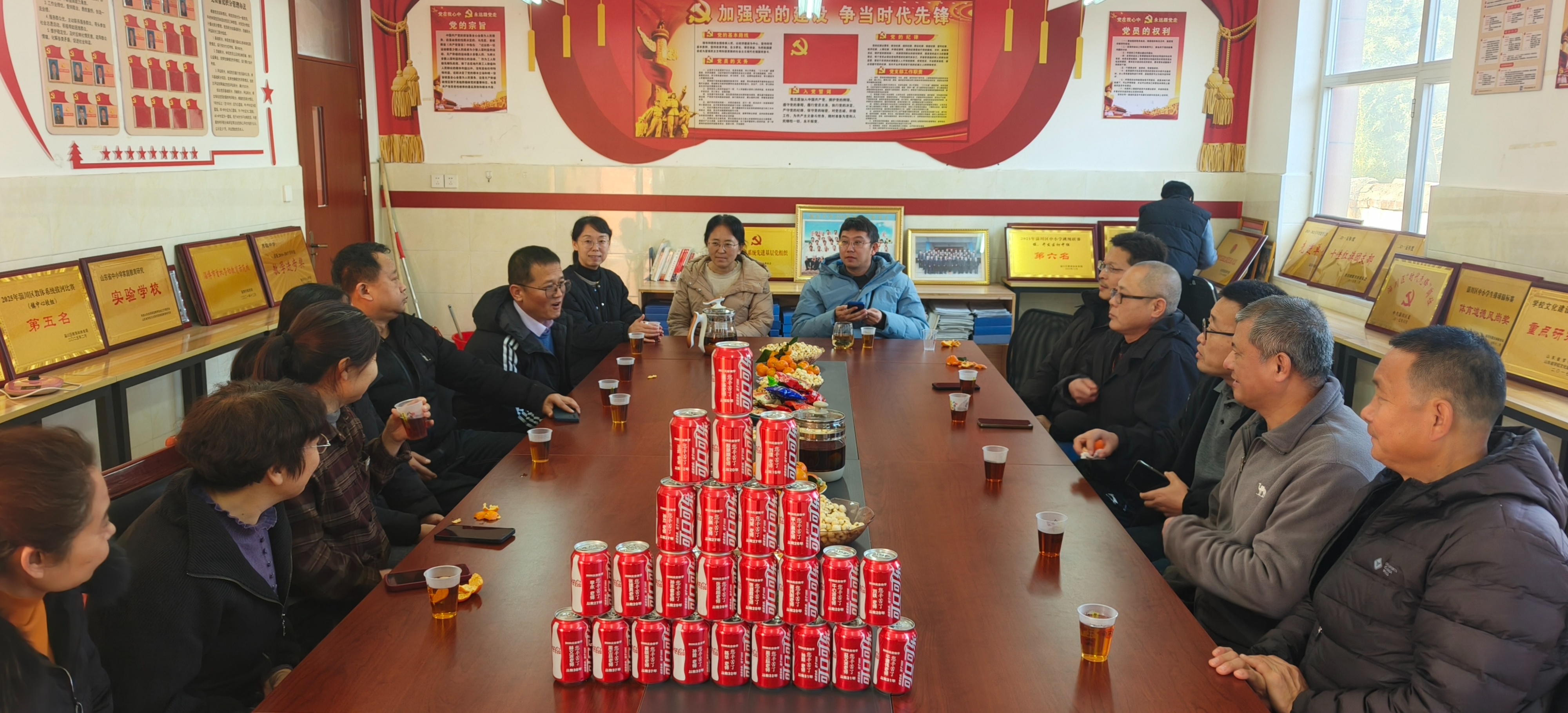 在一场以“讲从教故事,叙育人温情”为主题迎新年活动中,老师们手中捧着学校特别定制的刻有姓名和教龄的新年纪念可乐,围坐在一起,用拉呱这种亲切的方式分享从教以来那些“刻骨铭心”的故事。