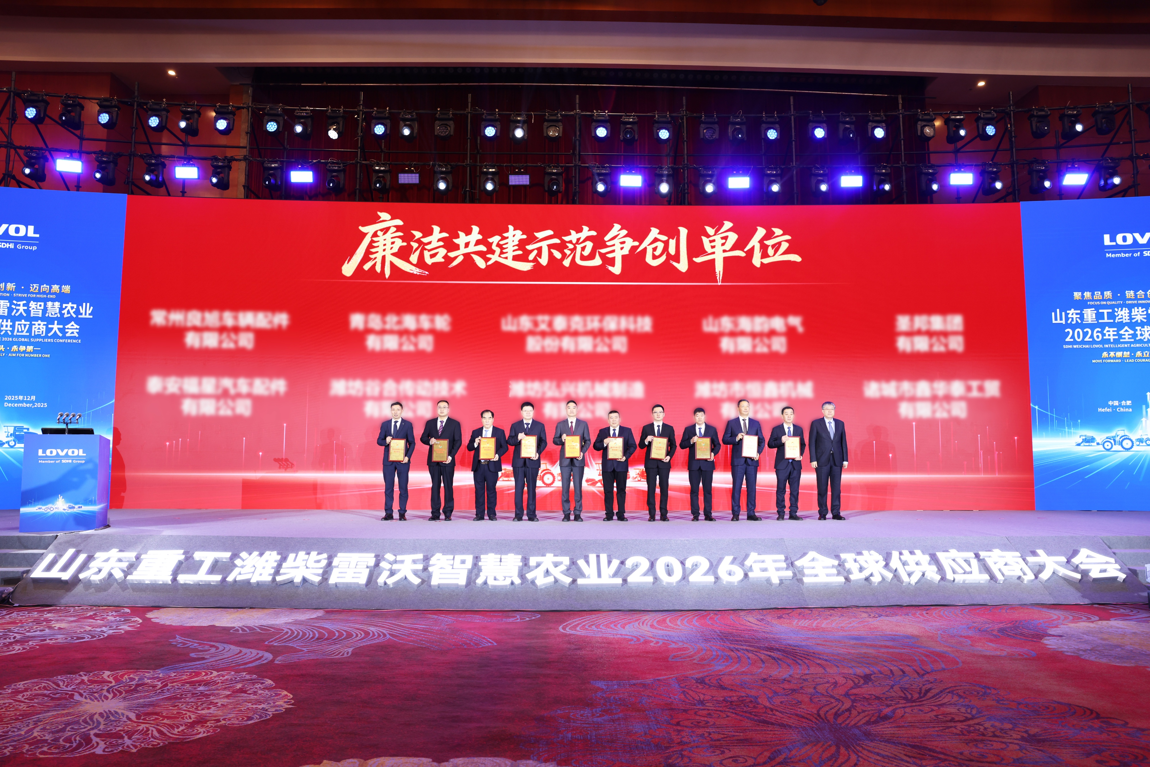 为树立行业标杆、凝聚合作共识,潍柴雷沃智慧农业在大会上对2025年度优秀供应商进行了表彰,并公布了首批10家“廉洁共建示范争创单位”,发布廉洁共建示范单位争创标准,为树立廉洁经营标杆、推动廉洁合作从“协议约束”向“深度融合”转变提供了可复制、可推广的实践样本,也为护航企业高质量发展注入了强劲的“廉”动力。