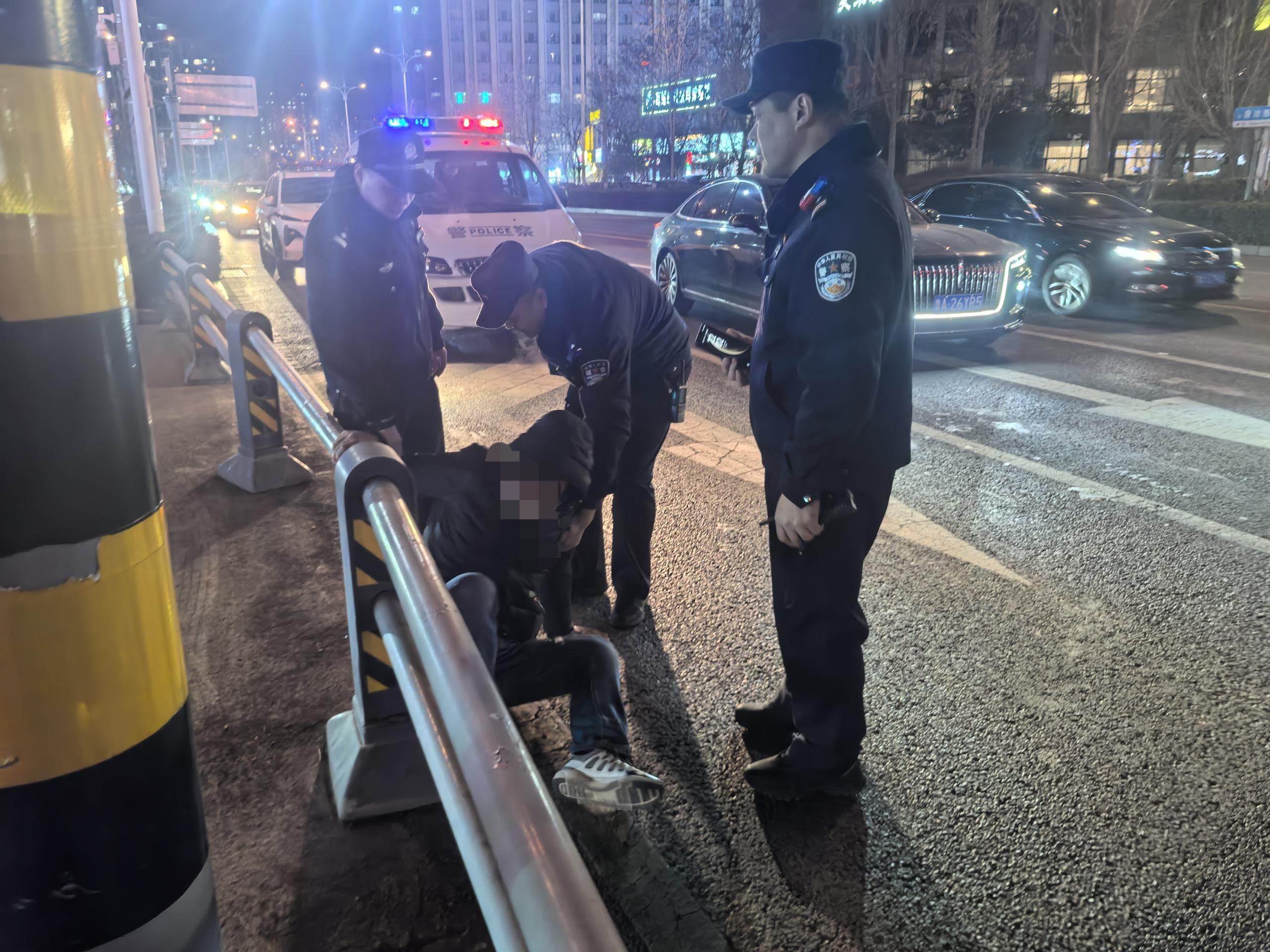 醉酒男子冬夜瘫倒路边,历城民警暖心救助