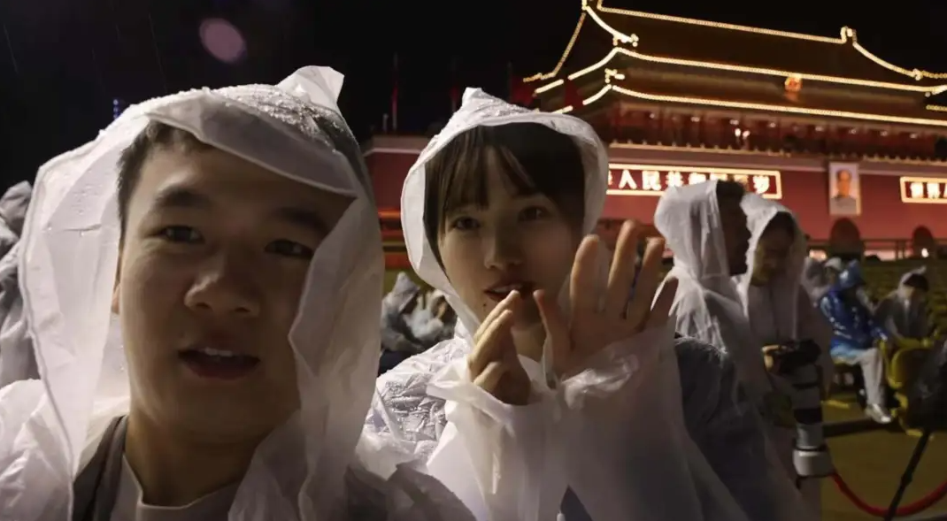 到了北京,全流程演练当天我们被分在天安门同侧的媒体区。8月23号,北京下着大雨,明明是三伏天,却冷得人哆嗦。我们裹着雨衣,一边发抖,一边反复走位,琢磨正式那天该怎么拍。