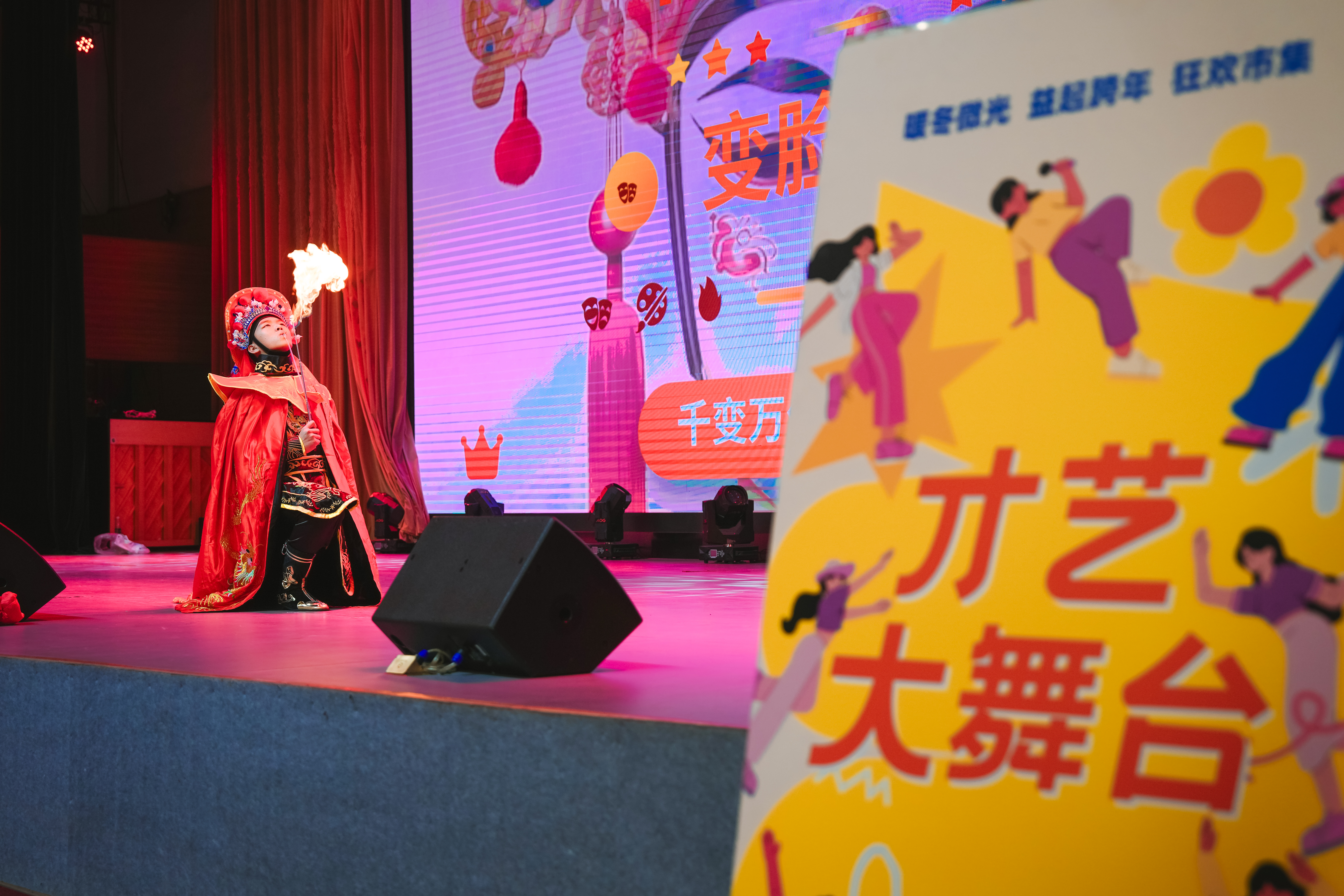 千人礼堂内更是气氛热烈。才艺大舞台上,同学们自信登台,唱歌、魔术、街舞、校园情景剧等节目轮番上演,尽管有些表演略带青涩,但真挚的情感与勇敢的展示依然赢得了台下阵阵掌声。“以前不敢在这么多人面前表演,这次鼓起勇气报名,没想到收获了这么多鼓励,特别开心!”一位完成表演的同学拿着奖励的校服熊,眼里闪烁着激动的光芒。“零食大作战”环节,中奖的同学冲进“零食池”,在10秒内奋力抱起零食,现场欢呼声、喝彩声不绝于耳,这份无门槛的快乐让每个人都感受到了市集的狂欢氛围。