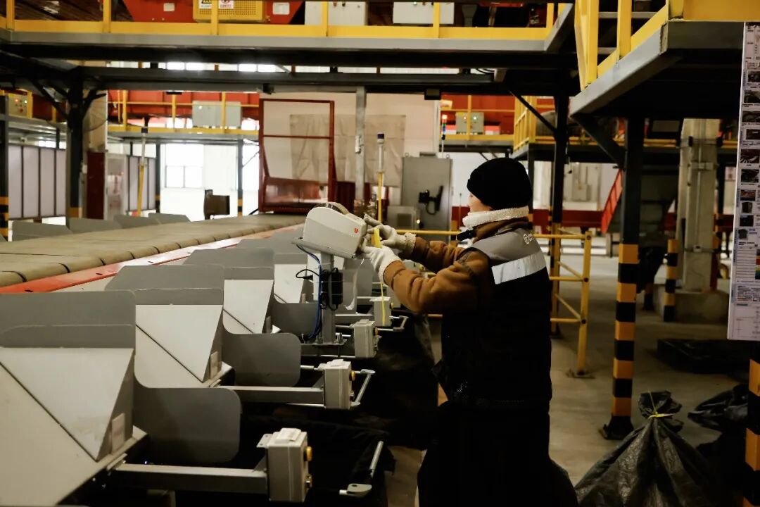 12月29日,工作人员通过机械化运输装置,快速输送包裹。喀什地区融媒体中心 记者侯立超 摄
