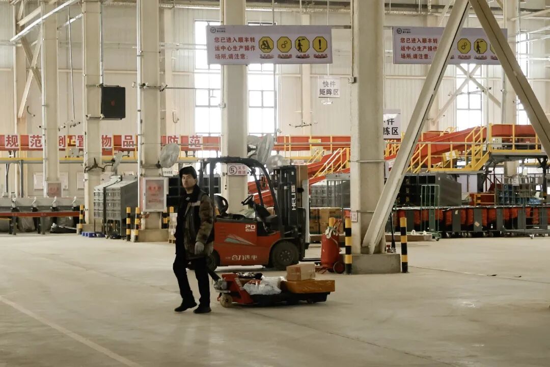 12月29日,在喀什顺丰转运中心,工作人员通过推车运送包裹。喀什地区融媒体中心 记者侯立超 摄