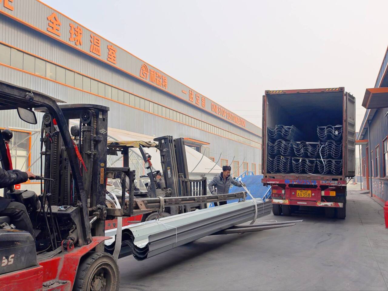 2025年12月29日上午,在位于潍坊寿光的山东利森特农业科技有限公司生产车间外,一根根温室大棚的“骨架”正在被装车,即将从潍坊青州乘上火车发往中亚。