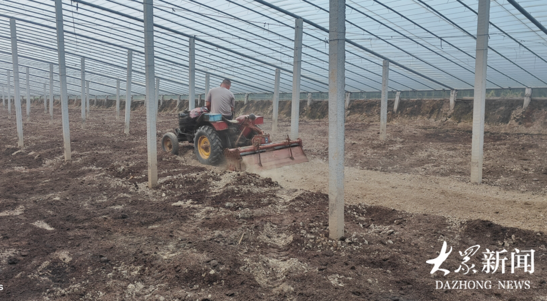 “我观察到这里每到7、8月份都会休耕,地里拌入牛粪鸡粪然后将大棚密封,趁着气温高进行焖棚。”曹广平介绍说,“但这种干焖依靠的是太阳暴晒,棚内温度仅有三四十度,牛粪鸡粪发酵不充分,也没法对棚内病虫害进行全面消杀,因此后续种植过程中,还需要施肥打药。我在干焖的基础上进行了一些改进,在农家肥的基础上额外添入了有机肥和生物菌,并用大水浇透。这样进行焖棚,微生物能对各类有机质进行充分发酵分解,这样大棚内温度能达到70度,有机肥能充分腐熟,土里的病虫害也会因为高温被全面地消杀。”