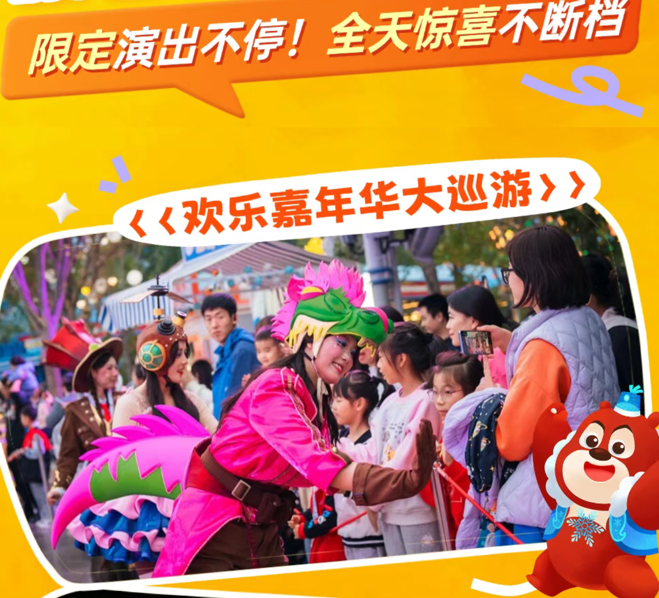 12月31日至1月3日夜场欢乐不打烊!绚烂烟花划破夜空,华丽花车巡游穿梭童话秘境,趣味NPC全程互动派送惊喜,一站式畅玩让大小朋友都能沉浸在不眠的欢乐海洋,定格跨年专属的甜蜜时光。