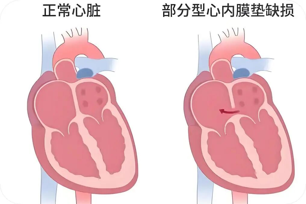 三年前,文文在家乡医院查体时被发现患有“部分型心内膜垫缺损”。这是一种由于心脏在胚胎发育时期房室间隔组织融合不全而形成的先天性畸形。通俗来说,就像心脏里两个相邻房间(左、右心房)之间的墙壁没有砌完整,留下了一个缺损的“洞”;同时,心房与心室之间的“单向阀门”(房室瓣)也发育异常,导致关闭不严。这种结构缺陷会引发血液异常分流,本该流向全身的血液有一部分“抄近道”流回了肺部,长期加重心脏与肺循环的负担,可逐渐导致心脏扩大、肺动脉高压,并令患儿易发呼吸道感染、发育迟缓,严重时甚至危及生命。