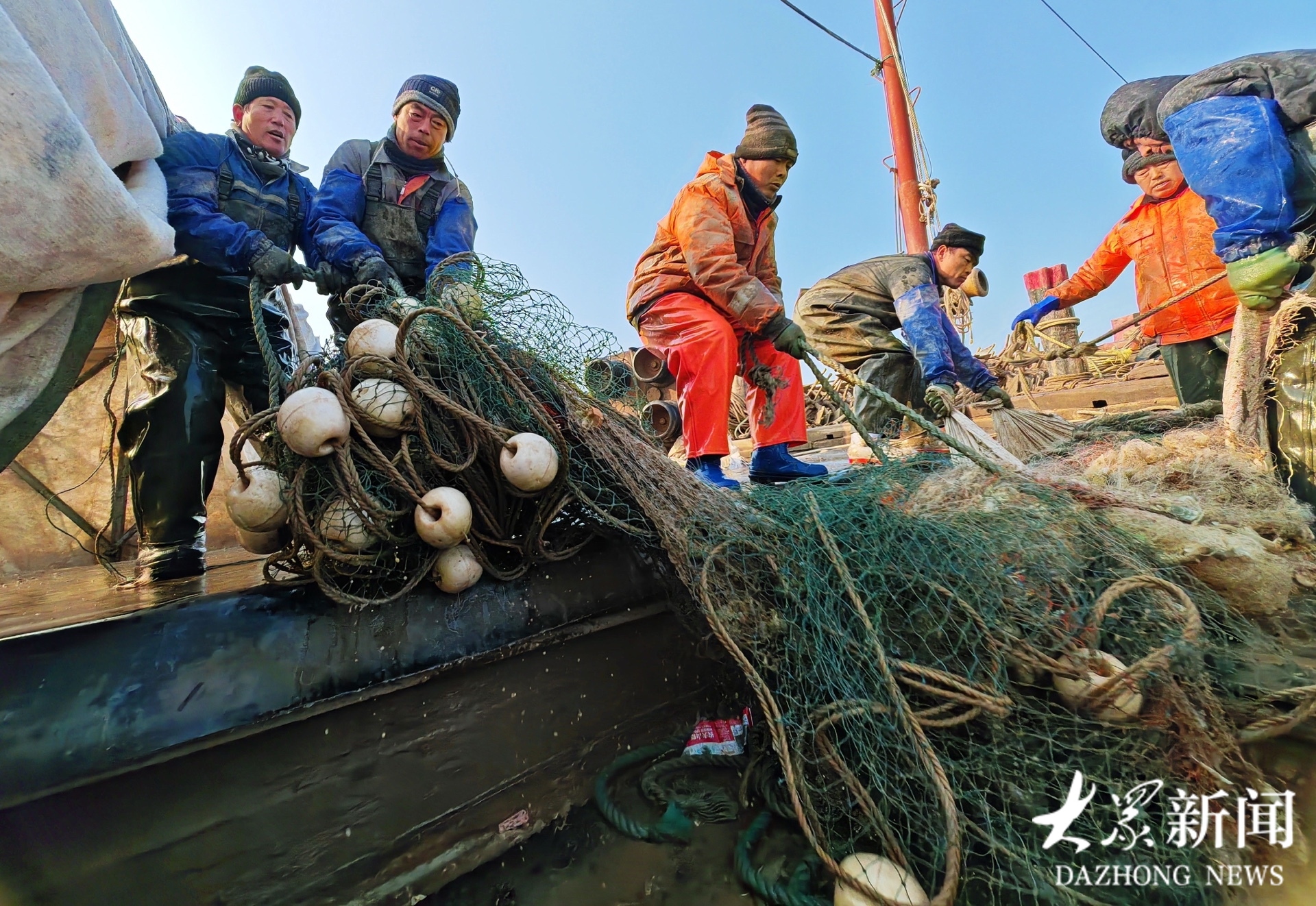 当天,渤海湾海域气温降至-4℃,渔民捕捞、分拣、清洗、装筐,捕捞作业紧张有序,他们的辛勤劳动让渤海湾优质海鲜走向全国各地居民的餐桌。琵琶虾学名虾蛄,俗称“爬虾”、“口虾蛄”、“琵琶虾”。冬季的琵琶虾,体格饱满、肉质鲜美,备受欢迎。