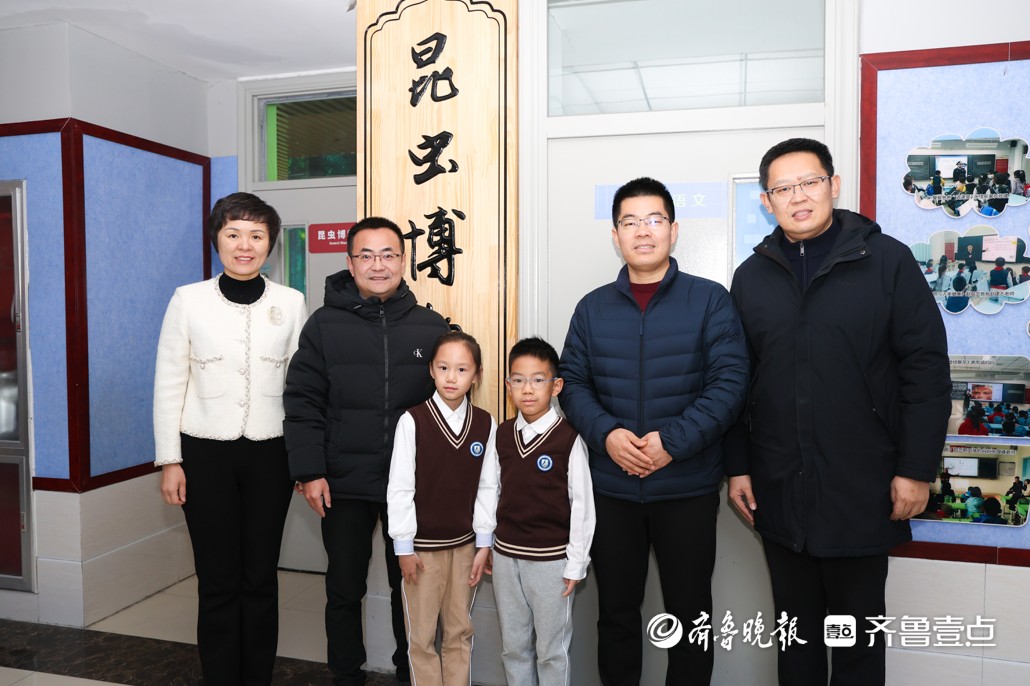 长清区委教育工委副书记、区教育体育局党组成员、副局长李晓亮,山东师范大学党委统战部副部长孙珂,昆虫博物馆标本捐展人——山东师范大学东岳学者、博士生导师张振国,山东师范大学附属小学党委书记张芳及少先队员代表共同为博物馆揭牌。