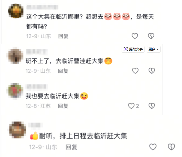 评论区里,挤满了临沂老乡的亲切问候,也涌进全国各地网友的留言:“这是属于临沂的神曲”“赶得不仅是集,是曾经的青春和家乡泥土的气息”“听得我想立马动身去临沂赶大集了”。不少年轻人专程前往临沂,体验歌词中描绘的氛围集市。还有一些网友加入创作,配上BGM宣传自家门口的大集。