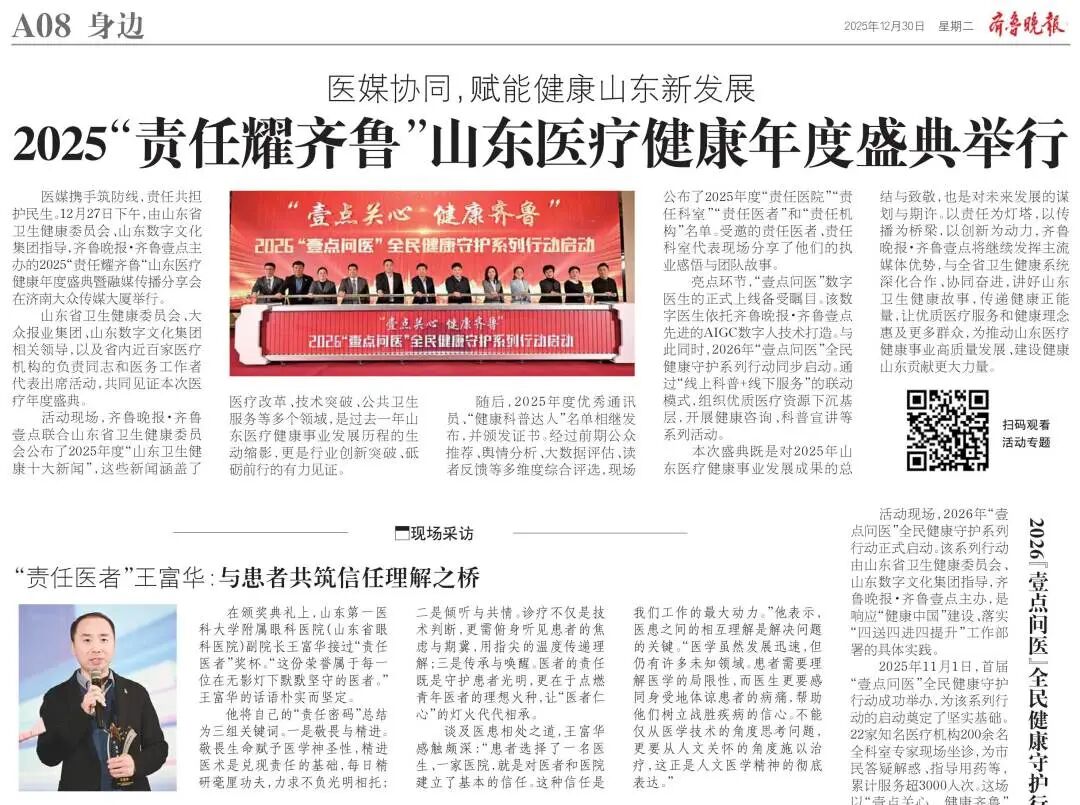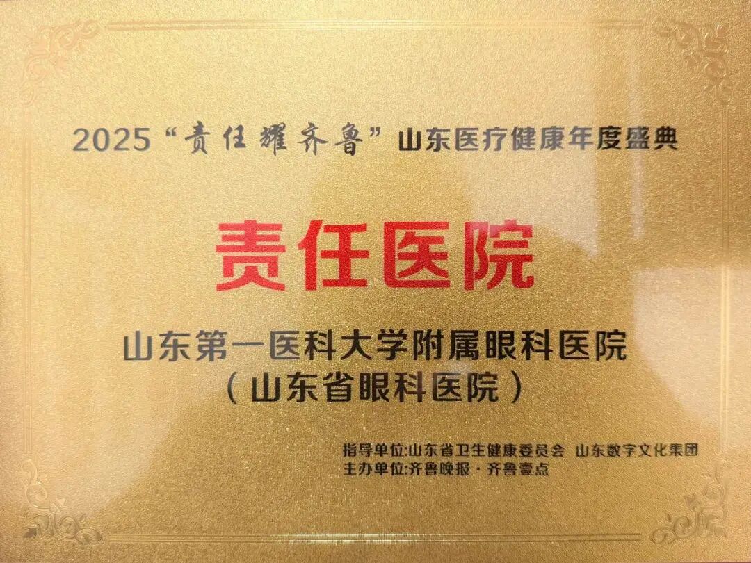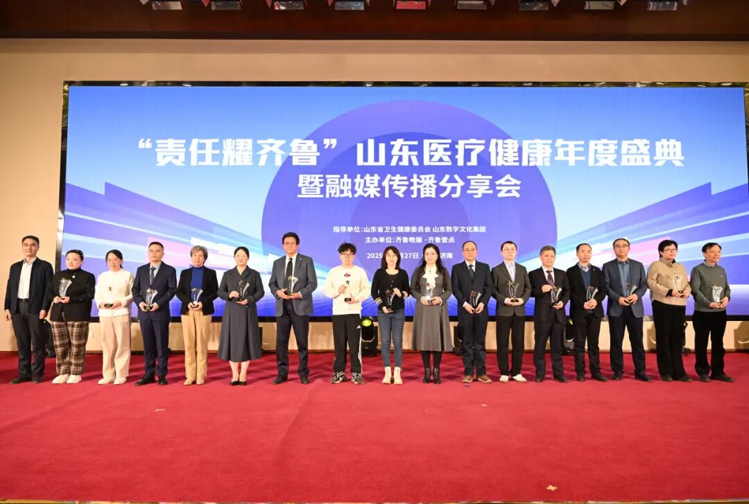 12月27日下午,由山东省卫生健康委员会、山东数字文化集团指导,齐鲁晚报・齐鲁壹点主办的2025“责任耀齐鲁”山东医疗年度盛典暨融媒传播分享会,在济南市大众传媒大厦隆重举行。山东第一医科大学附属眼科医院荣获“责任医院”,副院长王富华获评“责任医者”。1