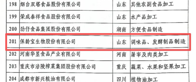 古贝春、百龙创园、保龄宝入选“2025中国食品工业重点企业500家名录”