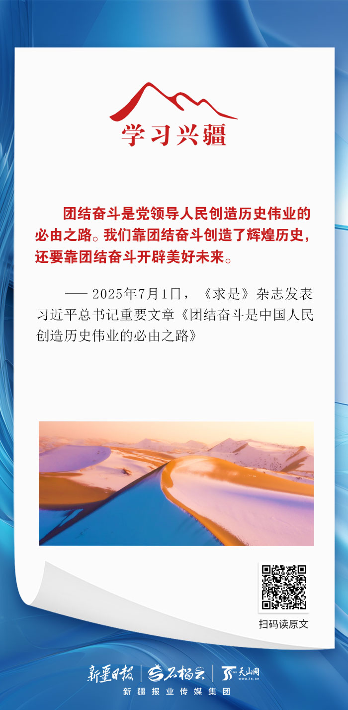 团结奋斗是党领导人民创造历史伟业的必由之路。我们靠团结奋斗创造了辉煌历史,还要靠团结奋斗开辟美好未来。——2025年7月1日,《求是》杂志发表习近平总书记重要文章《团结奋斗是中国人民创造历史伟业的必由之路》