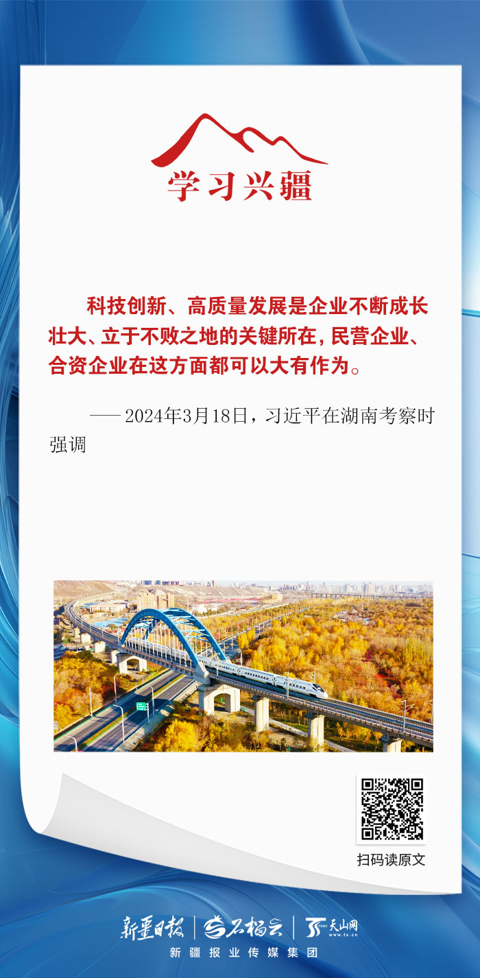 学习兴疆丨科技创新、高质量发展是企业不断成长壮大、立于不败之地的关键所在天山网 2026-01-01 00:34:11科技创新、高质量发展是企业不断成长壮大、立于不败之地的关键所在,民营企业、合资企业在这方面都可以大有作为。——2024年3月18日,习近平在湖南考察时强调责任编辑:赵艳敏