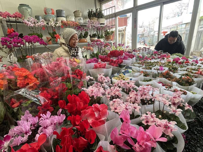 鲜花市场是节日消费的“顶流”,各大花卉市场客流涌动、花香四溢。芝罘区东方花卉市场宽巷22号的清馨阁花卉内,蝴蝶兰、红掌、蕙兰、仙客来等各色花卉整齐摆放,吸引不少市民驻足挑选。老板栾正君介绍,今年花卉价格与往年基本持平,新增了蝴蝶兰“藏宝图”等新品种,造型也更具新意——以往蝴蝶兰多是单一方向塑形,今年组合盆里的几支会塑成不同造型,格外受年轻人青睐。“今年元旦到除夕间隔长,我们早早备足了喜庆花卉,从现在到春节,年宵花会持续供应,花棚里暖和又清新,欢迎市民来逛逛。”祥和花鸟市场内,杜鹃、茶花、金橘等寓意吉祥的花卉同样热销,商户们用红灯笼、祝福语便签装点盆栽,市民们挑选鲜花装点家居、传递祝福,让新年氛围更显温馨。