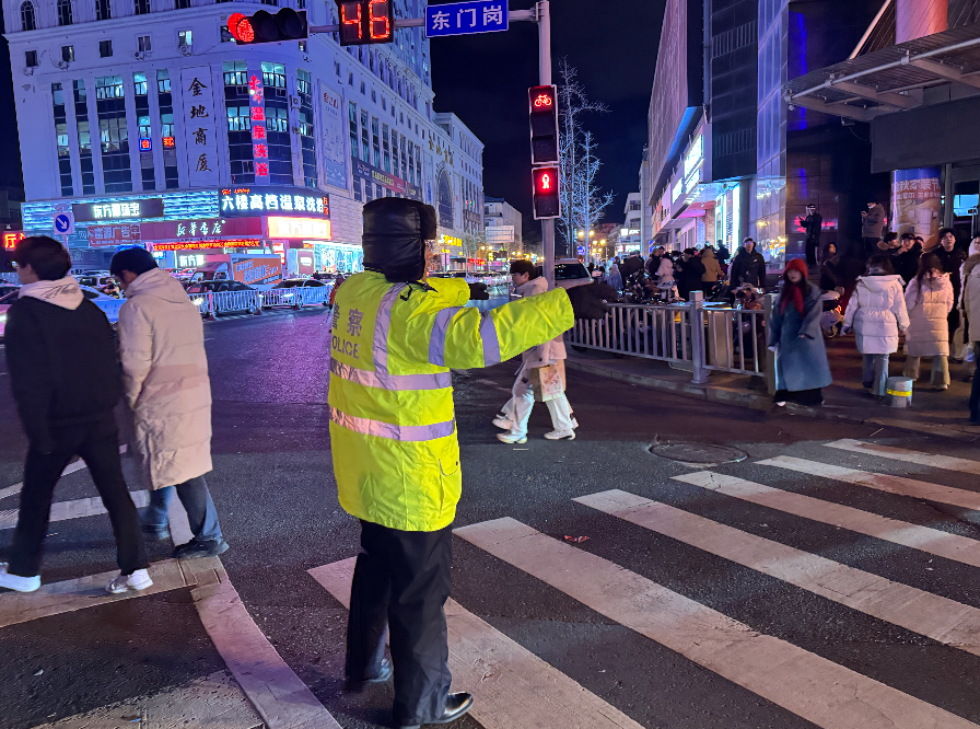 威海交警跨年夜坚守岗位,人流中筑牢安全防线