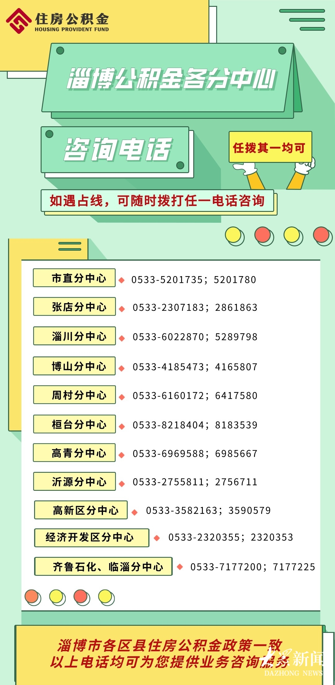 若有疑问,请拨打淄博市住房公积金管理中心各分中心咨询电话进行咨询。