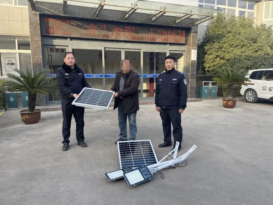 现场,民警逐一核对失主身份信息、报案记录与赃物明细,引导失主签字领取。“没想到被盗的太阳能光伏板及路灯LED灯头还能找回来,太感谢民警了!”失主孙大爷激动地说。不少群众还现场赠送锦旗表达谢意。退赃间隙,民警同步开展防范宣传,发放手册、讲解反诈知识,提升群众安全意识。