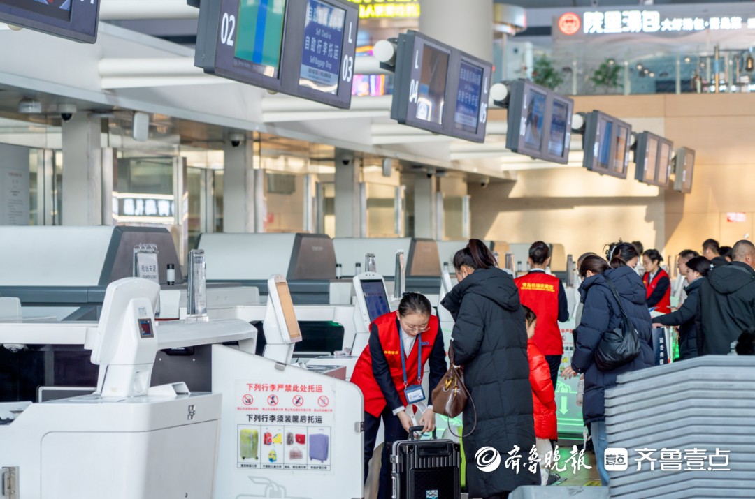 在出行关键保障环节,青岛机场结合客流变化动态调配资源,通过专属柜台及通道分流的方式,为亲子家庭及特殊旅客提供更加便捷、友好的出行体验。同时,通过前置提醒和现场引导,帮助旅客提前了解行李托运、安检过检等注意事项,提升通行效率。