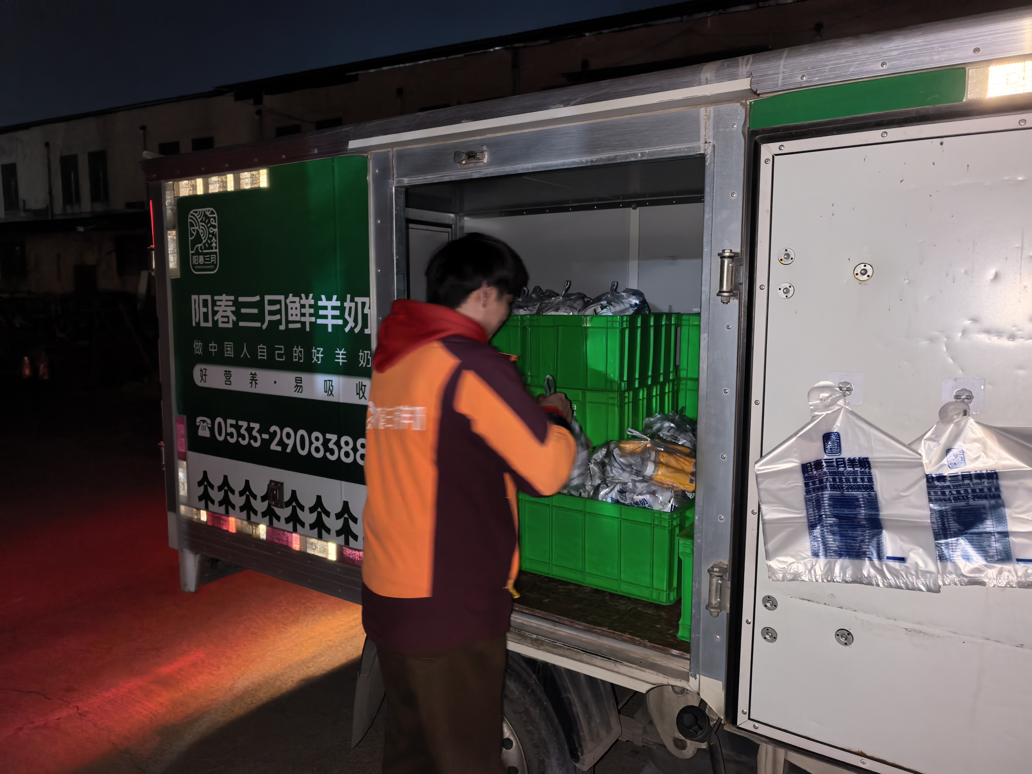阳春三月羊奶的配送流程中,扎根在生产一线的他们是排头兵。