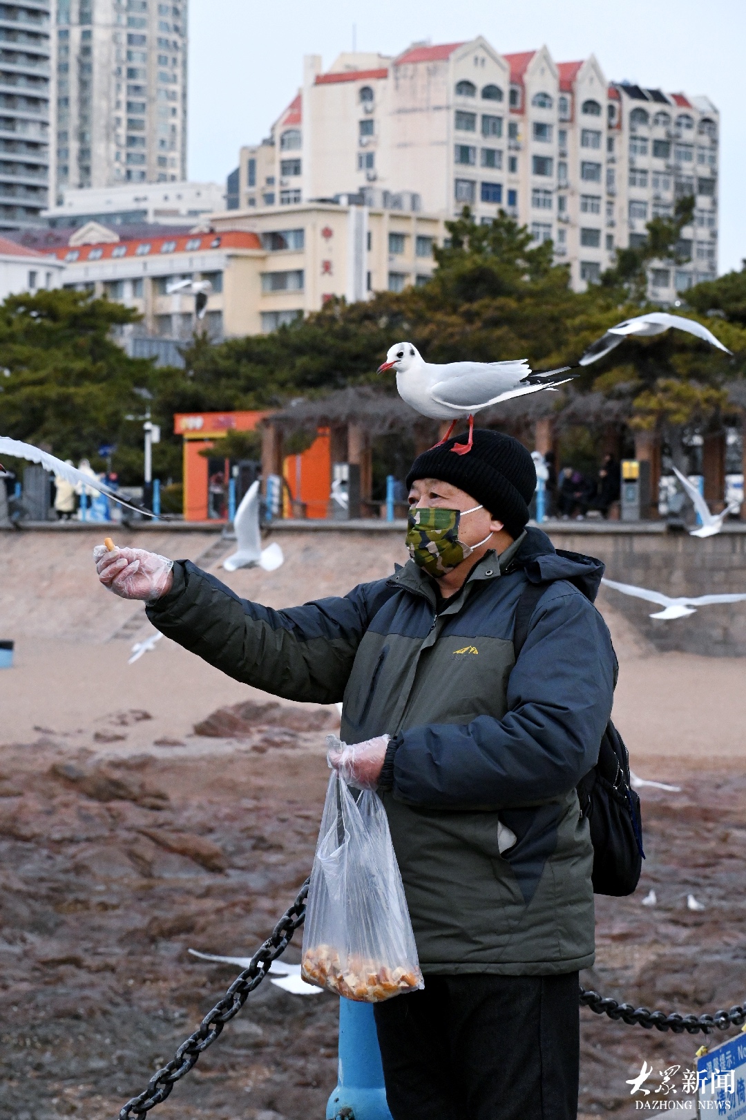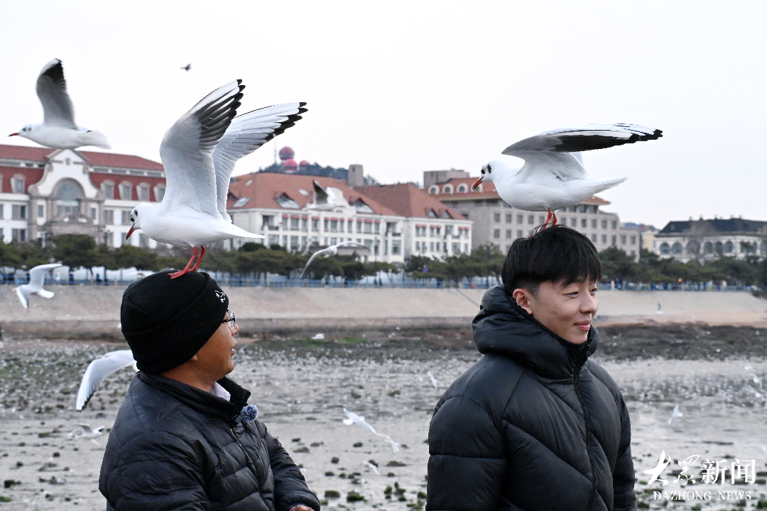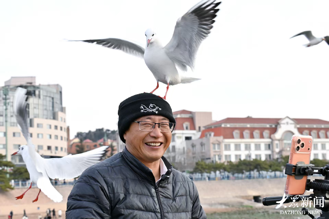 名场面!青岛大爷新年第一跳,海鸥游客共赴热闹