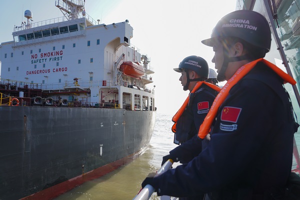 针对东营港作为重要液体化工运输枢纽的特点,执勤民警重点加强东营港海域锚地载运原油、液化烃等危化品船舶的检查力度,确保危险品运输通关安全高效。“节日期间船舶通关数量增加,我们通过科技赋能提升查验效率,开展实地检查守住安全底线,有效保障了企业生产运输需求。” 现场执勤民警介绍道。