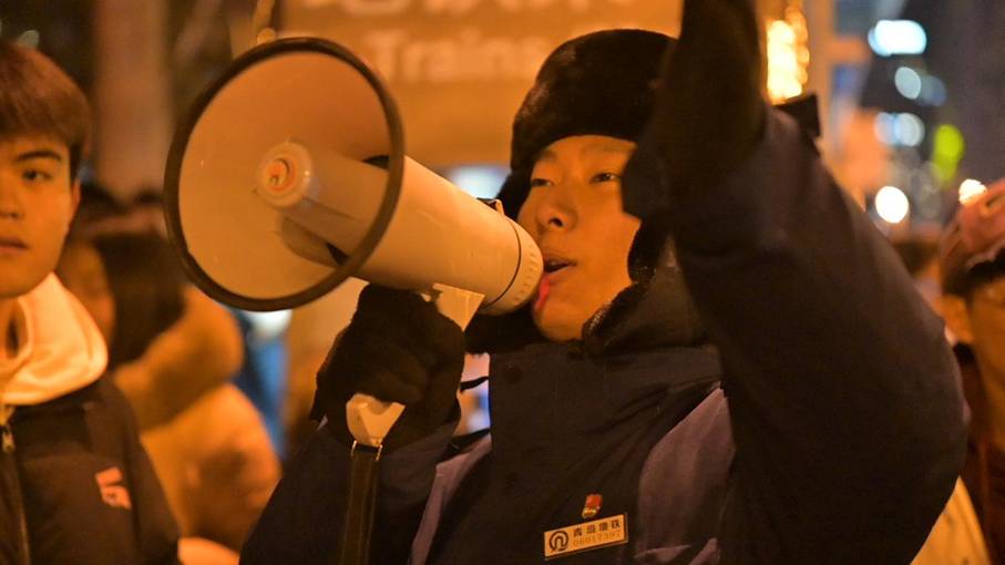 五四广场站内,人潮涌动间,党员先锋岗的红色绶带与志愿者的“志愿红”交相辉映,格外亮眼。站务员曹天润的嗓音已沙哑得几乎发不出声,手中的引导牌却始终笔直举起,“请往这边走,换乘3号线的乘客请注意脚下”的提醒声虽沙哑却坚定。副站区长王欣欣一早就到站巡查,送走最后一批乘客后带领员工完善收尾工作;值班站长李书勋连续6年坚守迎新年保障一线,从傍晚6点到凌晨时分,在出入口疏导人流的脚步从未停歇;刚结束白班的付正帅主动留下,与夜班值班站长刘超并肩作战至次日运营结束。运营结束后,车站还为85名在车站过夜休息乘客提供热水、方便面等暖心服务。