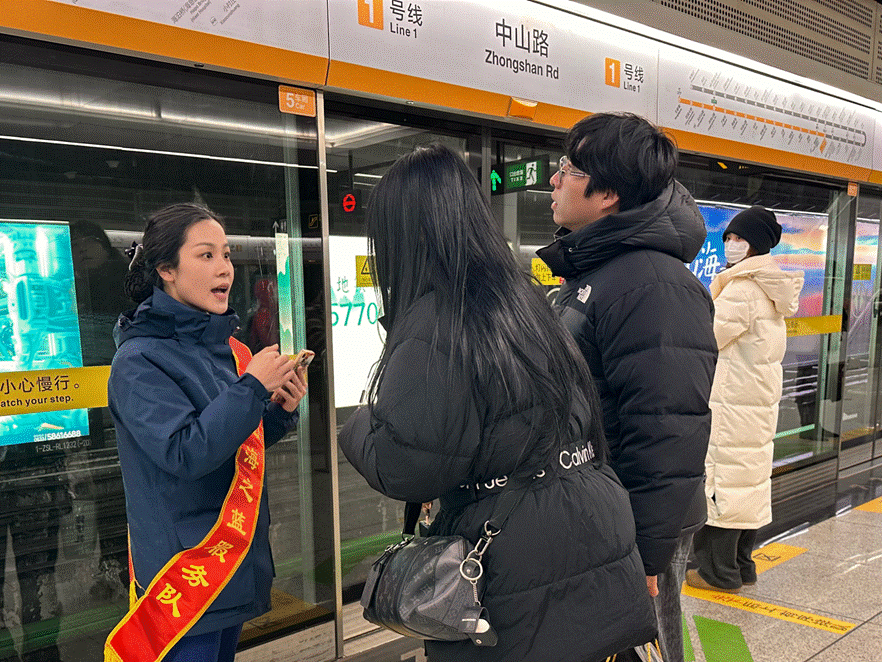 老城区的中山路站,红瓦里院的怀旧氛围与地铁服务的温情相融。值班站长夏金涛耐心为寻找天主教堂的乘客指引路线,“从D出入口出站,沿挂灯笼的路走很快就到”,声音沉稳让人安心;站务员盛资翔将温热的姜茶递到冻得发红的手中,用阳光般的笑容为冬夜添暖,用细致服务守护着老城的迎新年时光。