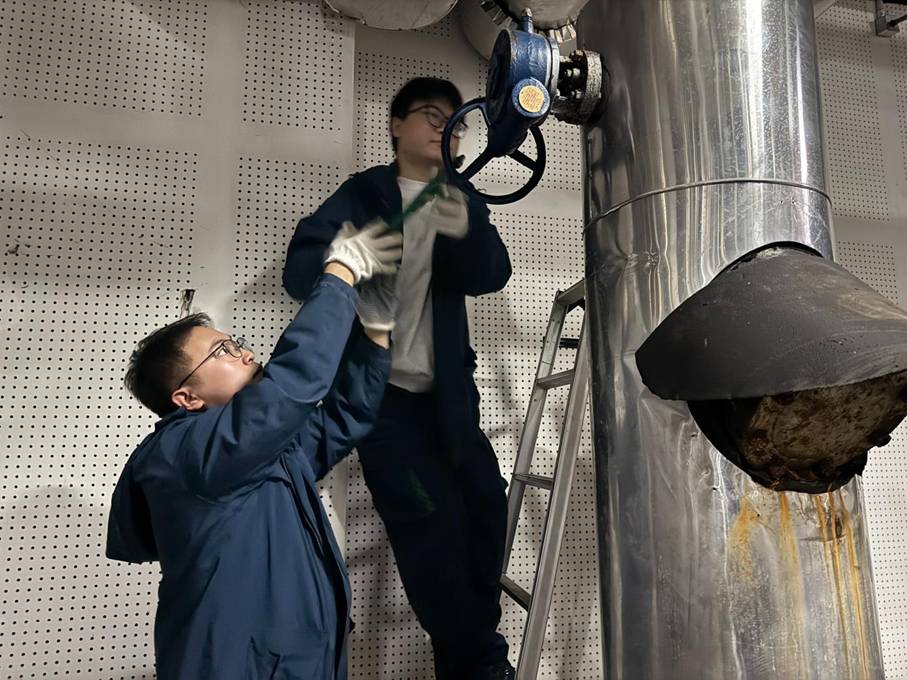 辽阳东路车辆基地的综合楼夹层里,场段风水电检修工高文涵与同事们用设备运行声迎接新年。他们检查风机轴承的细微震动,校准VRV空调机组的冷媒压力与蒸发温度,记录锅炉房内的补水流量与循环泵电流数据,守护着列车“家”的安全。“这个‘家’安全了,整条线路的运转才有根基”,他们用一次成功的故障预排除、一份完整的巡检记录,兑现首班列车准时出发的承诺。与此同时,变电专业值守人员在变电所内紧盯电压、电流参数,核查变压器、直流屏运行状态,备足抢修物资,守护着列车运行的“能量之源”。