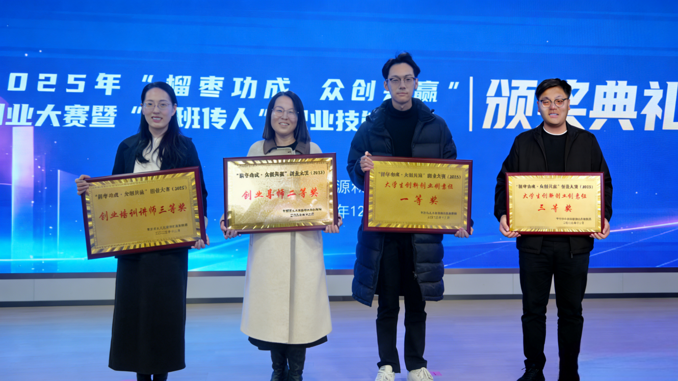 近日,枣庄市“榴枣功成 众创共赢”创业大赛圆满落幕,枣庄职业学院师生与行业精英在多个赛道同台竞争、表现亮眼,斩获一等奖、二等奖各一项,三等奖两项,实现学生参赛项目与教师专业能力建设双丰收。