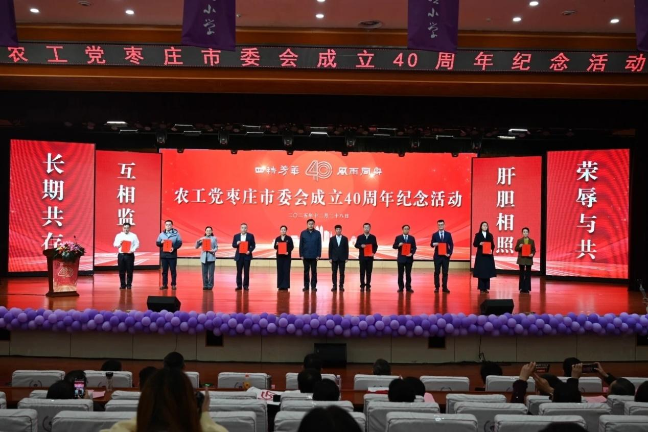 活动中,向加入农工党40周年、30周年党员颁发纪念章,表扬了先进集体和先进个人,举办了文艺汇演。其中,农工党枣庄职业学院支部主委赵新岳荣获“优秀党务工作者”称号,农工党党员李荣荣获评“优秀农工党党员”。这一荣誉是对学院农工党成员长期以来立足本职岗位、服务发展大局、积极履行职责的充分肯定。