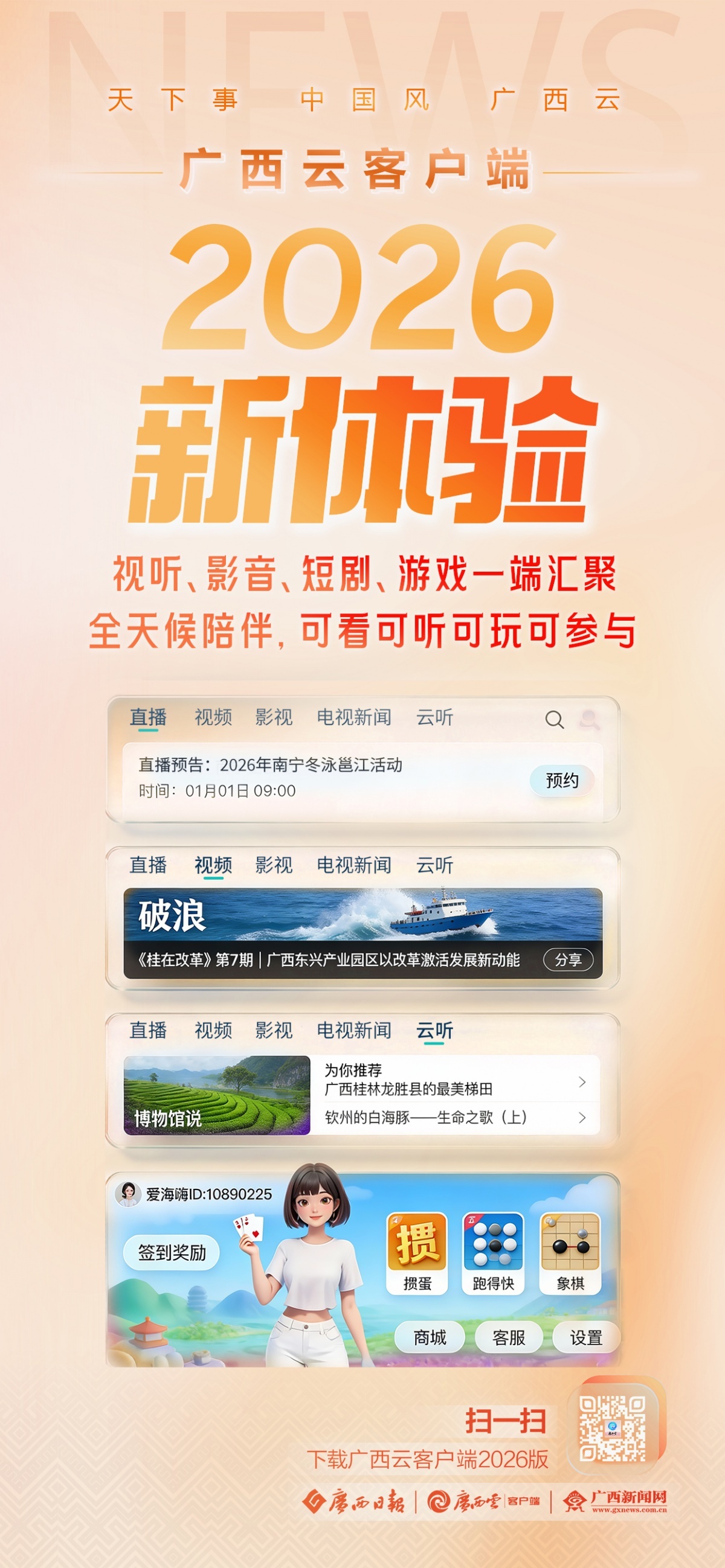 1月1日,广西云客户端2026版焕新上线。此次升级,是广西日报社深入推进管理、采编、经营和技术一体化改革,努力做好区市县技术平台三级贯通“后半篇文章”的重要成果。新版客户端深度融入人工智能技术,重构产品架构和运行机制,着力构建平台化、智能化、视听化、社交化的新型主流媒体客户端。